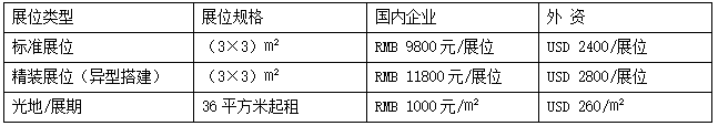 ※注:标准展位:围板(2.5m高)、楣板、射灯二支、洽谈桌一张、椅子二把、220V插座一个。