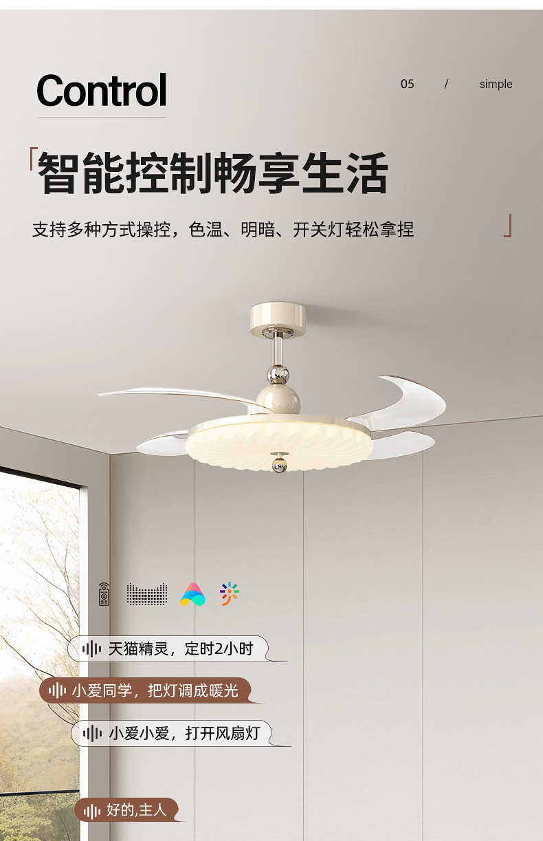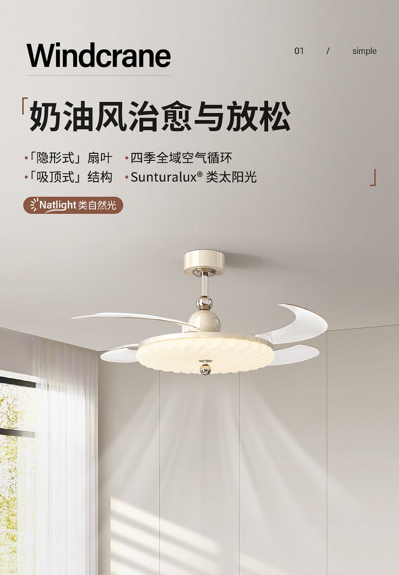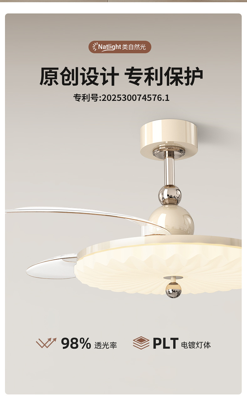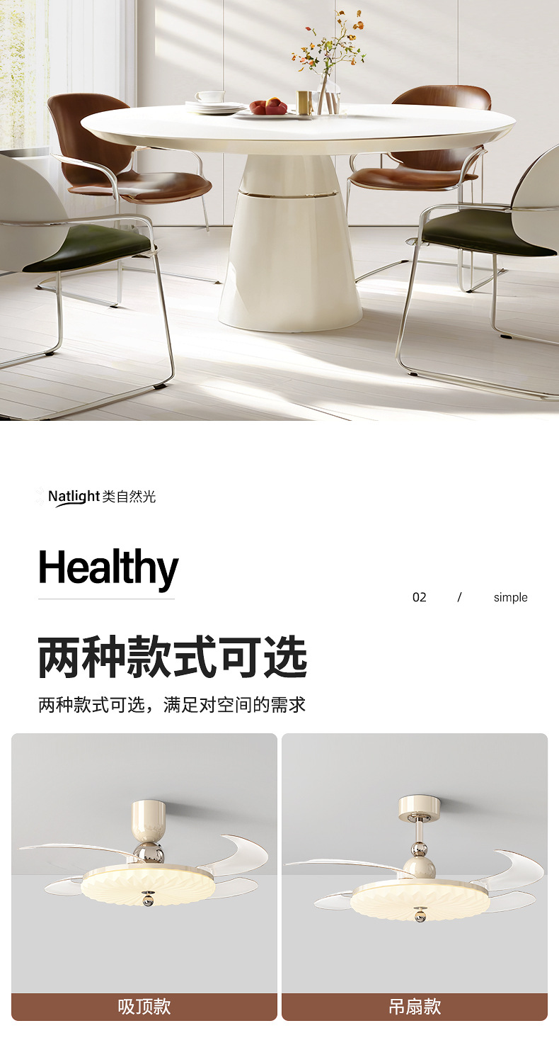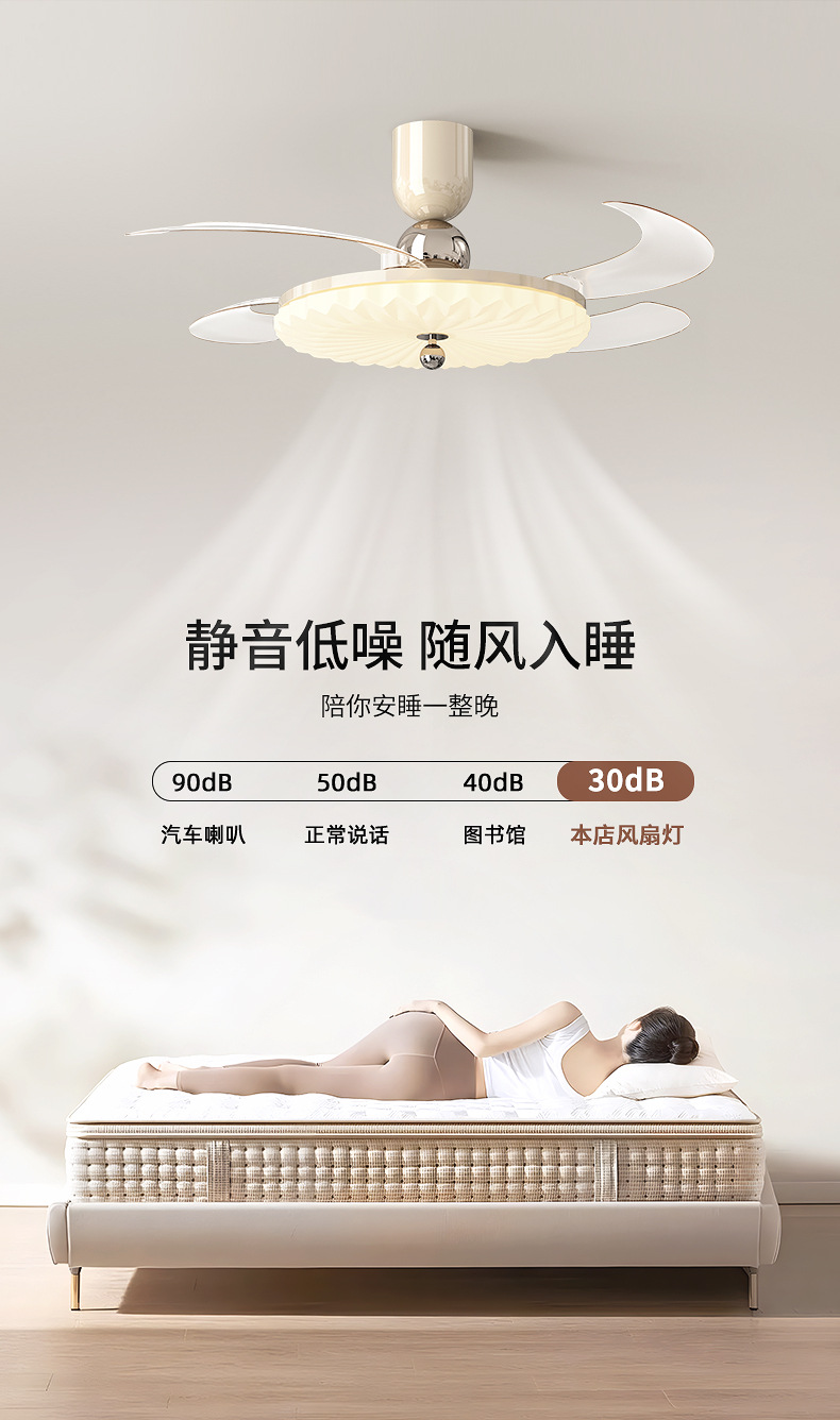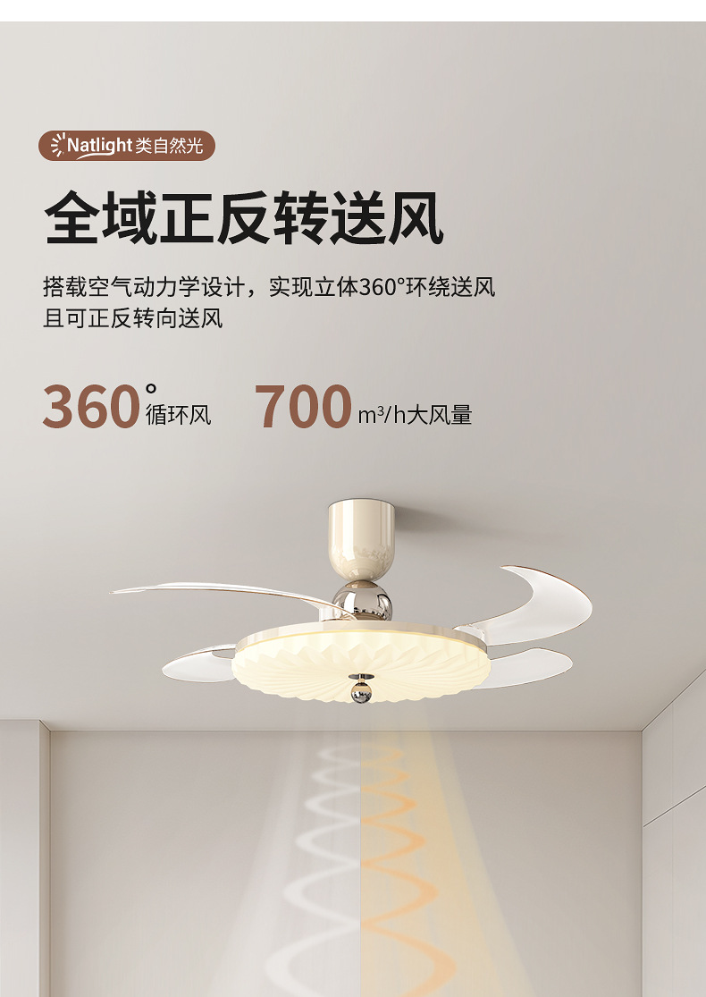 卧室吸顶风扇灯新款奶油风静音隐形灯扇一体主卧风扇灯饭厅吊扇灯