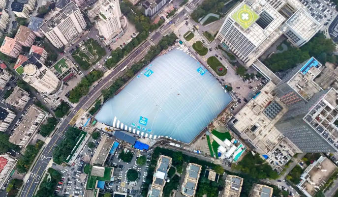 近日,由中建交通自主研发设计的青岛市首个全封闭式基坑气承式膜结构系统正式启用,用于青岛市市立医院东院区三期改扩建项目施工,这也是青岛首个建筑工程基坑气膜投入使用。该气膜系统由膜结构、索结构、基础锚固系