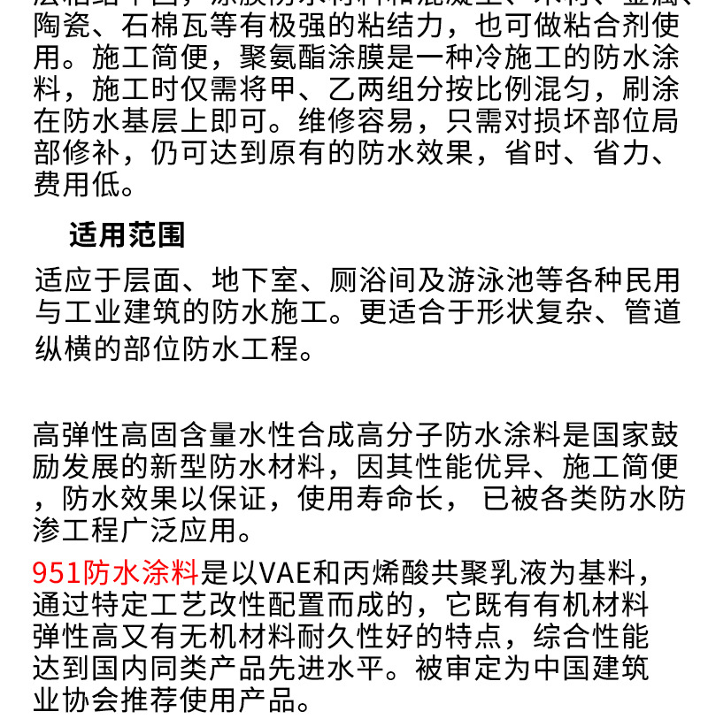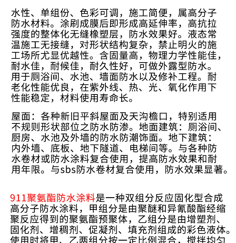 本网页所展示的有关【聚氨酯防水涂料951水性911油性 屋顶外墙卫生间 国标单组分双组份_防水涂料_潍坊蓝图防水材料有限公司】的信息/图片/参数等由建筑云-建筑工程行业的专业平台的会员【潍坊蓝图防水材料有限公司】提供,由建筑云-建筑工程行业的专业平台会员【潍坊蓝图防水材料有限公司】自行对信息/图片/参数等的真实性、准确性和合法性负责,本平台(本网站)仅提供展示服务,请谨慎交易,因交易而产生的法律关系及法律纠纷由您自行协商解决,本平台(本网站)对此不承担任何责任。您在本网页可以浏览【聚氨酯防水涂料951水性911油性 屋顶外墙卫生间 国标单组分双组份_防水涂料_潍坊蓝图防水材料有限公司】有关的信息/图片/价格等及提供【聚氨酯防水涂料951水性911油性 屋顶外墙卫生间 国标单组分双组份_防水涂料_潍坊蓝图防水材料有限公司】的商家公司简介、联系方式等信息。