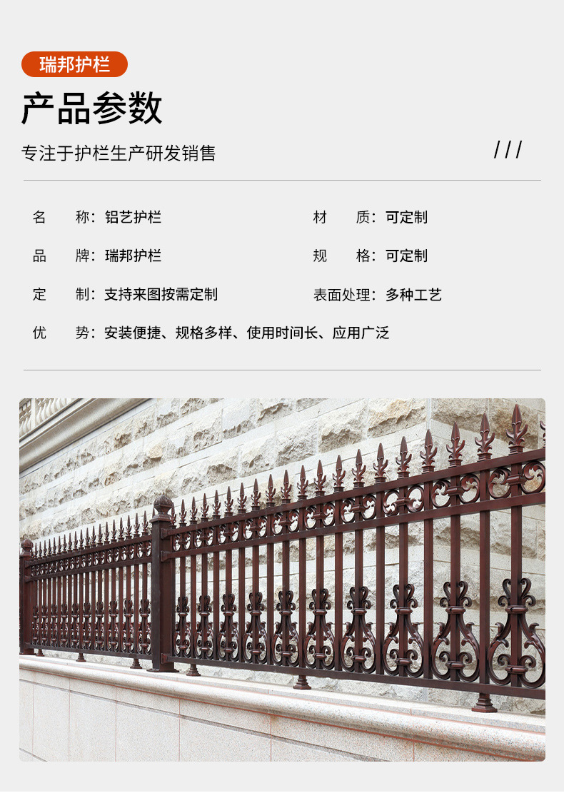 本网页所展示的有关【铝艺护栏铝合金围栏阳台别墅围墙 户外铁艺锌钢栏杆庭院防护栅栏_不锈钢栏杆_吉林省瑞邦建筑集团有限公司】的信息/图片/参数等由建筑云-建筑工程行业的专业平台的会员【吉林省瑞邦建筑集团有限公司】提供,由建筑云-建筑工程行业的专业平台会员【吉林省瑞邦建筑集团有限公司】自行对信息/图片/参数等的真实性、准确性和合法性负责,本平台(本网站)仅提供展示服务,请谨慎交易,因交易而产生的法律关系及法律纠纷由您自行协商解决,本平台(本网站)对此不承担任何责任。您在本网页可以浏览【铝艺护栏铝合金围栏阳台别墅围墙 户外铁艺锌钢栏杆庭院防护栅栏_不锈钢栏杆_吉林省瑞邦建筑集团有限公司】有关的信息/图片/价格等及提供【铝艺护栏铝合金围栏阳台别墅围墙 户外铁艺锌钢栏杆庭院防护栅栏_不锈钢栏杆_吉林省瑞邦建筑集团有限公司】的商家公司简介、联系方式等信息。