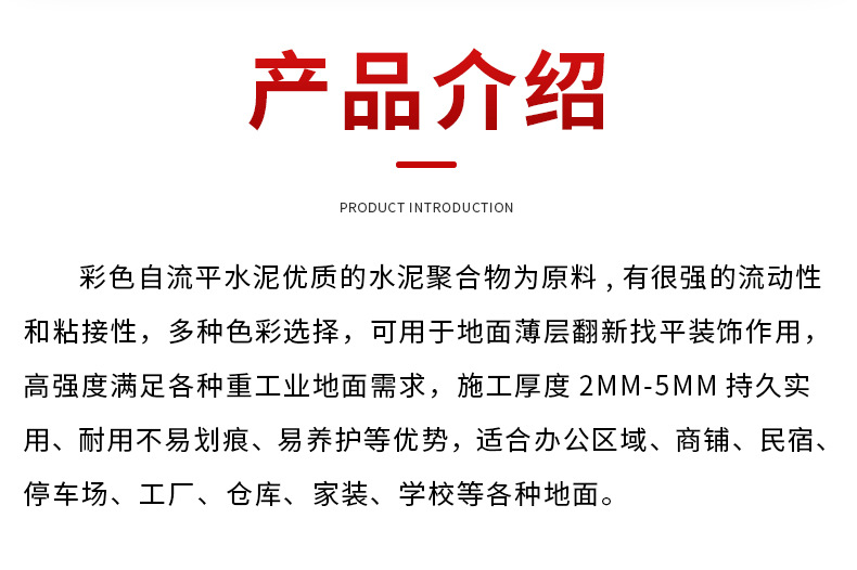 本网页所展示的有关【彩色高强自流平水泥批发路面快速快干修补料地坪道路填坑翻新料_水泥_浙江翡石新型建材科技有限公司】的信息/图片/参数等由建筑云-建筑工程行业的专业平台的会员【浙江翡石新型建材科技有限公司】提供,由建筑云-建筑工程行业的专业平台会员【浙江翡石新型建材科技有限公司】自行对信息/图片/参数等的真实性、准确性和合法性负责,本平台(本网站)仅提供展示服务,请谨慎交易,因交易而产生的法律关系及法律纠纷由您自行协商解决,本平台(本网站)对此不承担任何责任。您在本网页可以浏览【彩色高强自流平水泥批发路面快速快干修补料地坪道路填坑翻新料_水泥_浙江翡石新型建材科技有限公司】有关的信息/图片/价格等及提供【彩色高强自流平水泥批发路面快速快干修补料地坪道路填坑翻新料_水泥_浙江翡石新型建材科技有限公司】的商家公司简介、联系方式等信息。