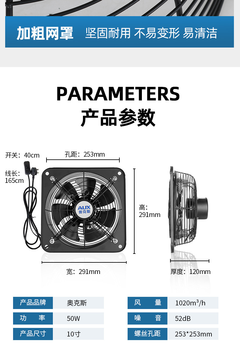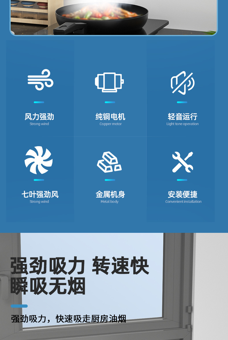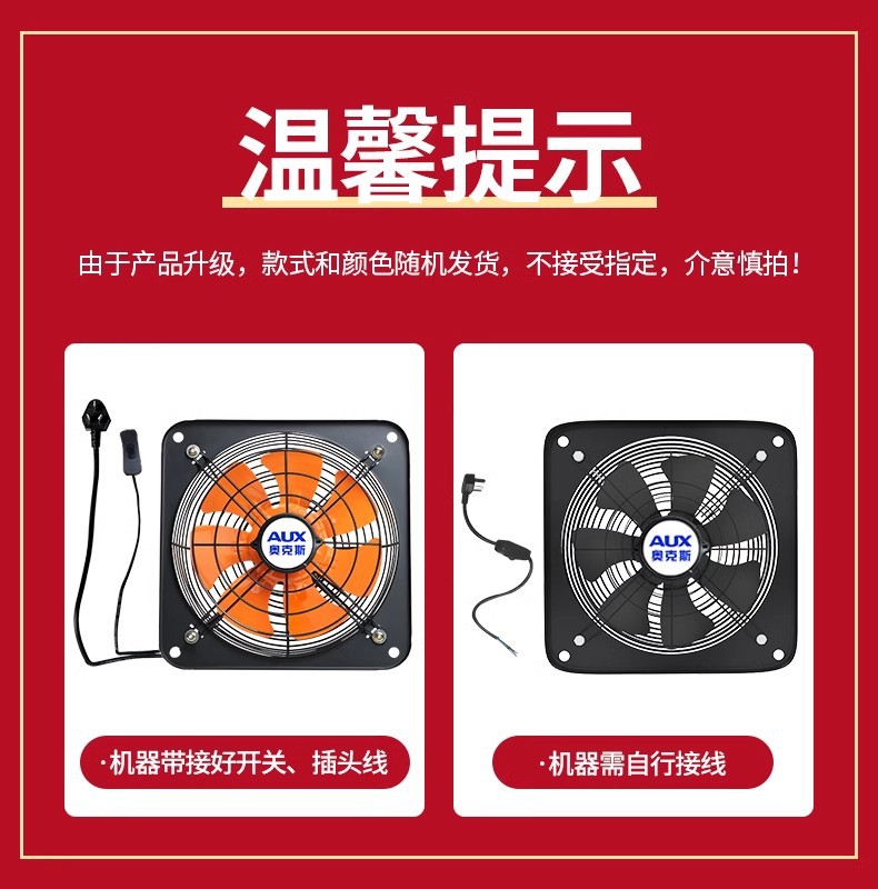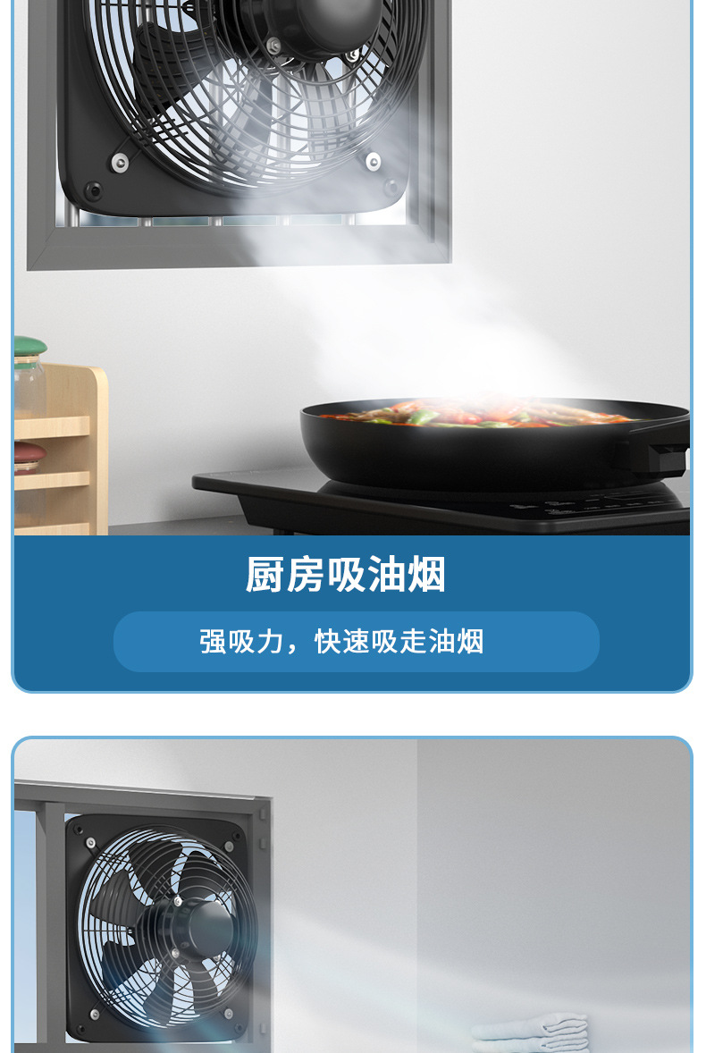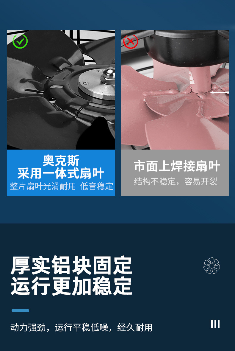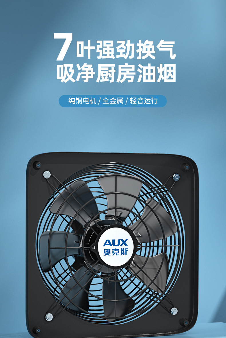 奥克斯油烟扇厨房强力大风排气扇全塑抽油烟机墙壁玻璃翻盖换气扇