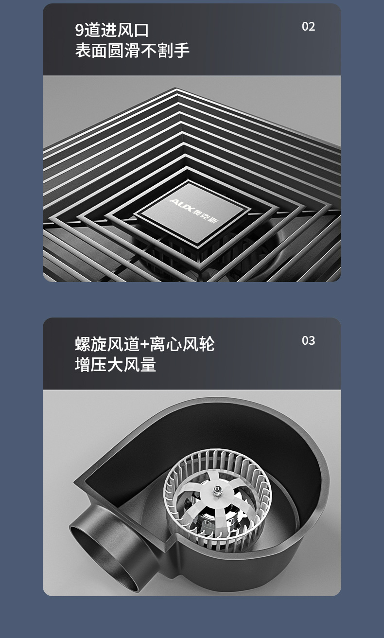 奥克斯排风扇新风机通风设备换气扇排气扇斜流管道风机圆形抽风机