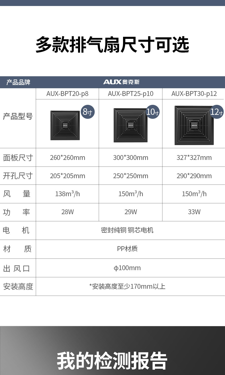 奥克斯300*300天花板集成吊顶换气扇铝扣板30*30厨房卫生间排气扇