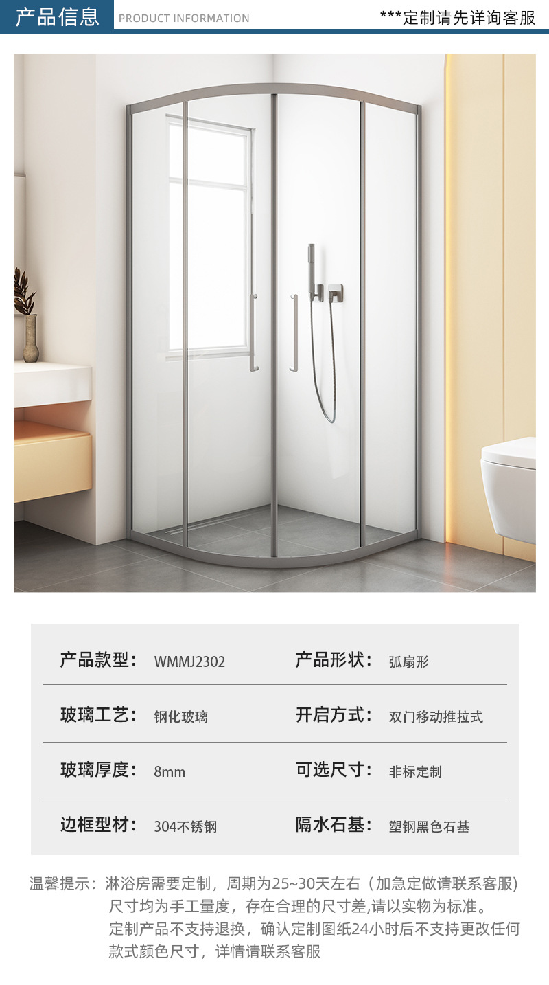 本网页所展示的有关【广东佛山枪灰不锈钢淋浴房弧形浴室玻璃隔断淋浴间干湿分离一体式_卫浴隔断_佛山市禅城区沃美洁具厂】的信息/图片/参数等由建筑云-建筑工程行业的专业平台的会员【佛山市禅城区沃美洁具厂】提供,由建筑云-建筑工程行业的专业平台会员【佛山市禅城区沃美洁具厂】自行对信息/图片/参数等的真实性、准确性和合法性负责,本平台(本网站)仅提供展示服务,请谨慎交易,因交易而产生的法律关系及法律纠纷由您自行协商解决,本平台(本网站)对此不承担任何责任。您在本网页可以浏览【广东佛山枪灰不锈钢淋浴房弧形浴室玻璃隔断淋浴间干湿分离一体式_卫浴隔断_佛山市禅城区沃美洁具厂】有关的信息/图片/价格等及提供【广东佛山枪灰不锈钢淋浴房弧形浴室玻璃隔断淋浴间干湿分离一体式_卫浴隔断_佛山市禅城区沃美洁具厂】的商家公司简介、联系方式等信息。