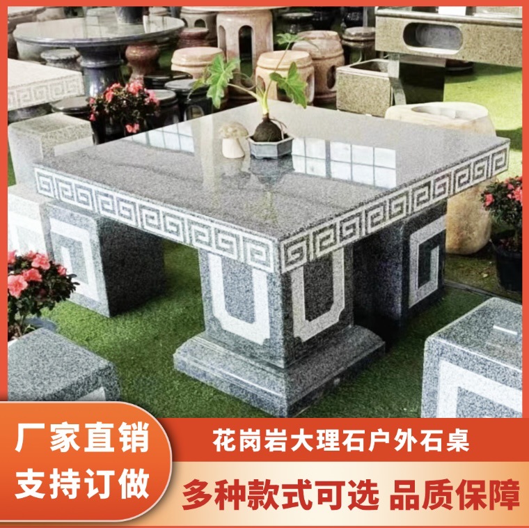 花岗岩石桌石凳户外庭院公园小区一套室外座椅大理石天然别墅家用