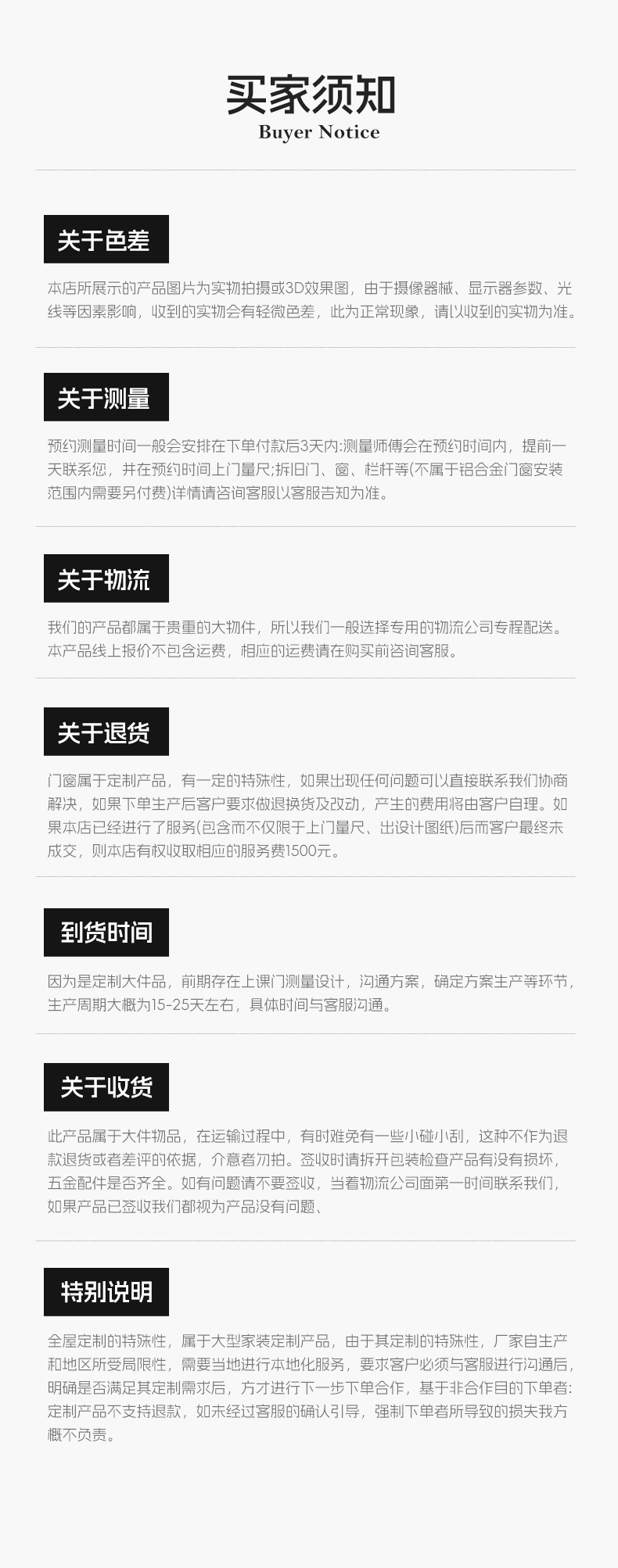 发货期限自买家付款之日起 15 天内发货