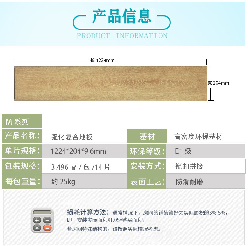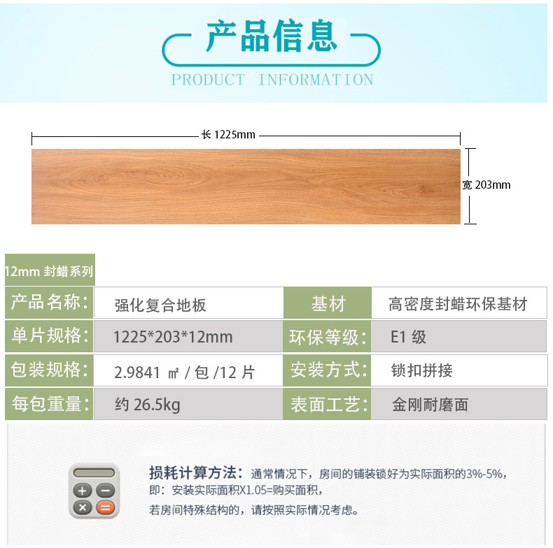 本网页所展示的有关【9mm现货供应强化复合木地板 防滑工装出租房办公室酒店公寓木地板_强化地板_佛山市美而乐家居有限公司】的信息/图片/参数等由建筑云-建筑工程行业的专业平台的会员【佛山市美而乐家居有限公司】提供,由建筑云-建筑工程行业的专业平台会员【佛山市美而乐家居有限公司】自行对信息/图片/参数等的真实性、准确性和合法性负责,本平台(本网站)仅提供展示服务,请谨慎交易,因交易而产生的法律关系及法律纠纷由您自行协商解决,本平台(本网站)对此不承担任何责任。您在本网页可以浏览【9mm现货供应强化复合木地板 防滑工装出租房办公室酒店公寓木地板_强化地板_佛山市美而乐家居有限公司】有关的信息/图片/价格等及提供【9mm现货供应强化复合木地板 防滑工装出租房办公室酒店公寓木地板_强化地板_佛山市美而乐家居有限公司】的商家公司简介、联系方式等信息。