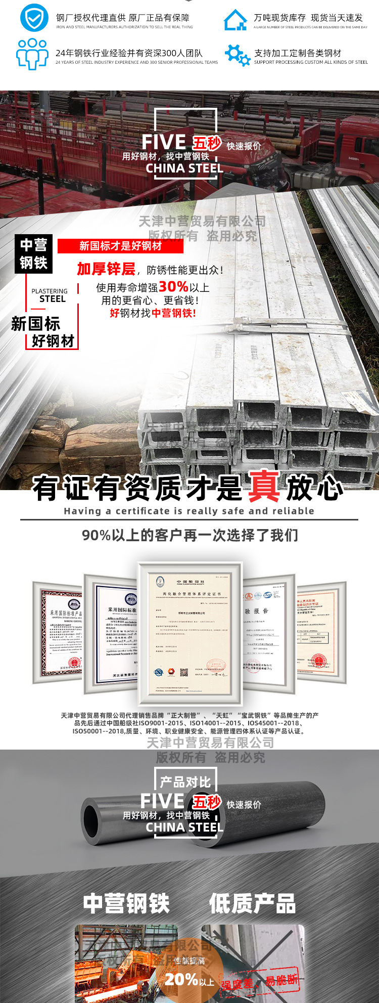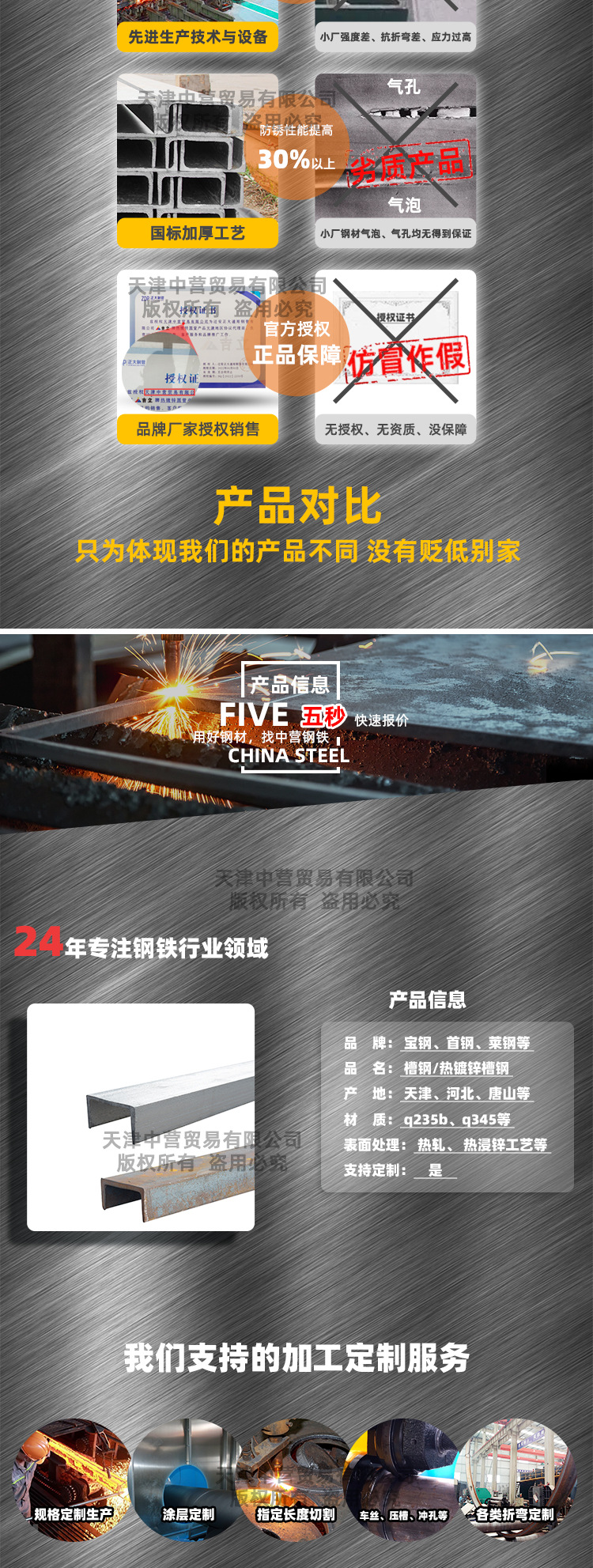 本网页所展示的有关【热镀锌槽钢10号国标镀锌槽钢12#幕墙用槽钢悬挑梁工型钢厂家现货_钢材_天津中营贸易有限公司】的信息/图片/参数等由建筑云-建筑工程行业的专业平台的会员【天津中营贸易有限公司】提供,由建筑云-建筑工程行业的专业平台会员【天津中营贸易有限公司】自行对信息/图片/参数等的真实性、准确性和合法性负责,本平台(本网站)仅提供展示服务,请谨慎交易,因交易而产生的法律关系及法律纠纷由您自行协商解决,本平台(本网站)对此不承担任何责任。您在本网页可以浏览【热镀锌槽钢10号国标镀锌槽钢12#幕墙用槽钢悬挑梁工型钢厂家现货_钢材_天津中营贸易有限公司】有关的信息/图片/价格等及提供【热镀锌槽钢10号国标镀锌槽钢12#幕墙用槽钢悬挑梁工型钢厂家现货_钢材_天津中营贸易有限公司】的商家公司简介、联系方式等信息。