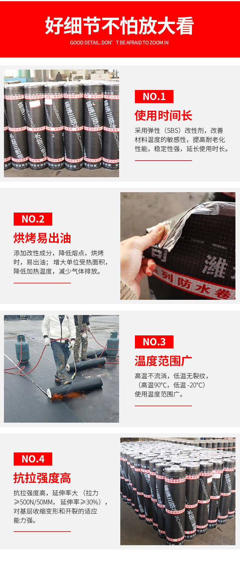 本网页所展示的有关【火烤型sbs防水卷材改性沥青弹性体聚酯胎3mm4mm厚屋面楼顶防水_防水卷材_潍坊市鑫诺防水材料有限公司】的信息/图片/参数等由建筑云-建筑工程行业的专业平台的会员【潍坊市鑫诺防水材料有限公司】提供,由建筑云-建筑工程行业的专业平台会员【潍坊市鑫诺防水材料有限公司】自行对信息/图片/参数等的真实性、准确性和合法性负责,本平台(本网站)仅提供展示服务,请谨慎交易,因交易而产生的法律关系及法律纠纷由您自行协商解决,本平台(本网站)对此不承担任何责任。您在本网页可以浏览【火烤型sbs防水卷材改性沥青弹性体聚酯胎3mm4mm厚屋面楼顶防水_防水卷材_潍坊市鑫诺防水材料有限公司】有关的信息/图片/价格等及提供【火烤型sbs防水卷材改性沥青弹性体聚酯胎3mm4mm厚屋面楼顶防水_防水卷材_潍坊市鑫诺防水材料有限公司】的商家公司简介、联系方式等信息。