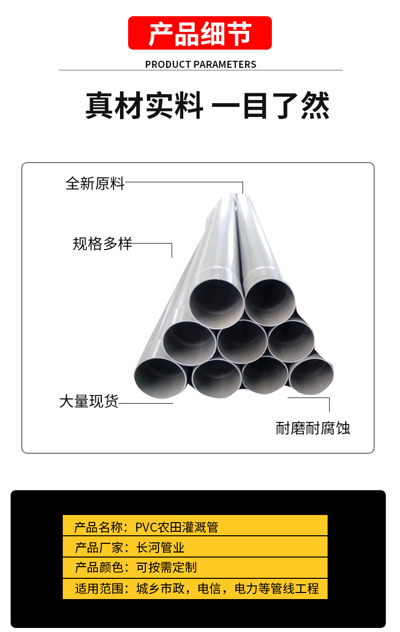 本网页所展示的有关【厂家pvcu灌溉管给水管农田灌溉管道下水管pvc水管dn110 160 315_PVC管材_临沂长河管业有限公司】的信息/图片/参数等由建筑云-建筑工程行业的专业平台的会员【临沂长河管业有限公司】提供,由建筑云-建筑工程行业的专业平台会员【临沂长河管业有限公司】自行对信息/图片/参数等的真实性、准确性和合法性负责,本平台(本网站)仅提供展示服务,请谨慎交易,因交易而产生的法律关系及法律纠纷由您自行协商解决,本平台(本网站)对此不承担任何责任。您在本网页可以浏览【厂家pvcu灌溉管给水管农田灌溉管道下水管pvc水管dn110 160 315_PVC管材_临沂长河管业有限公司】有关的信息/图片/价格等及提供【厂家pvcu灌溉管给水管农田灌溉管道下水管pvc水管dn110 160 315_PVC管材_临沂长河管业有限公司】的商家公司简介、联系方式等信息。